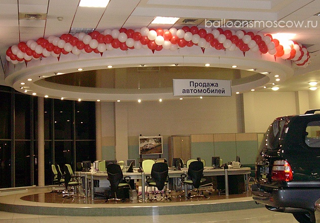 Автосалон, автомобиль оформить воздушными шарами +7 (495) 642-4849